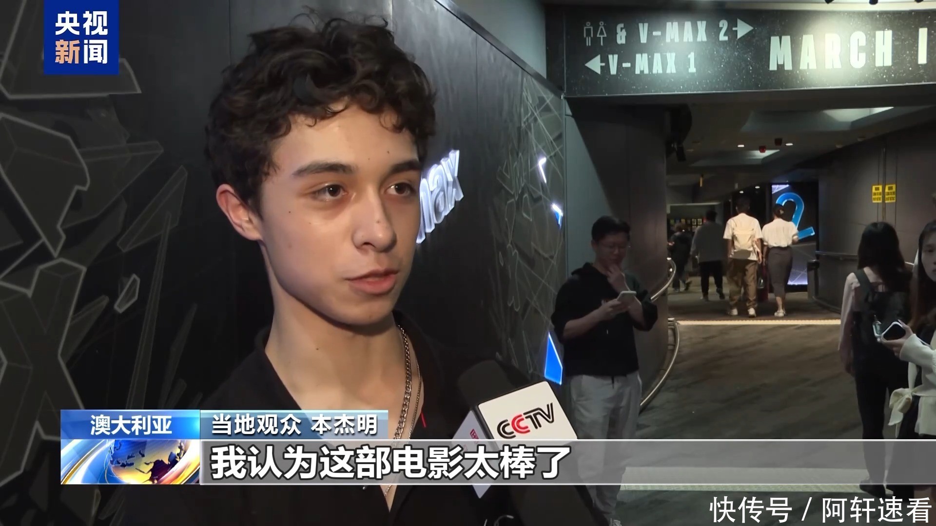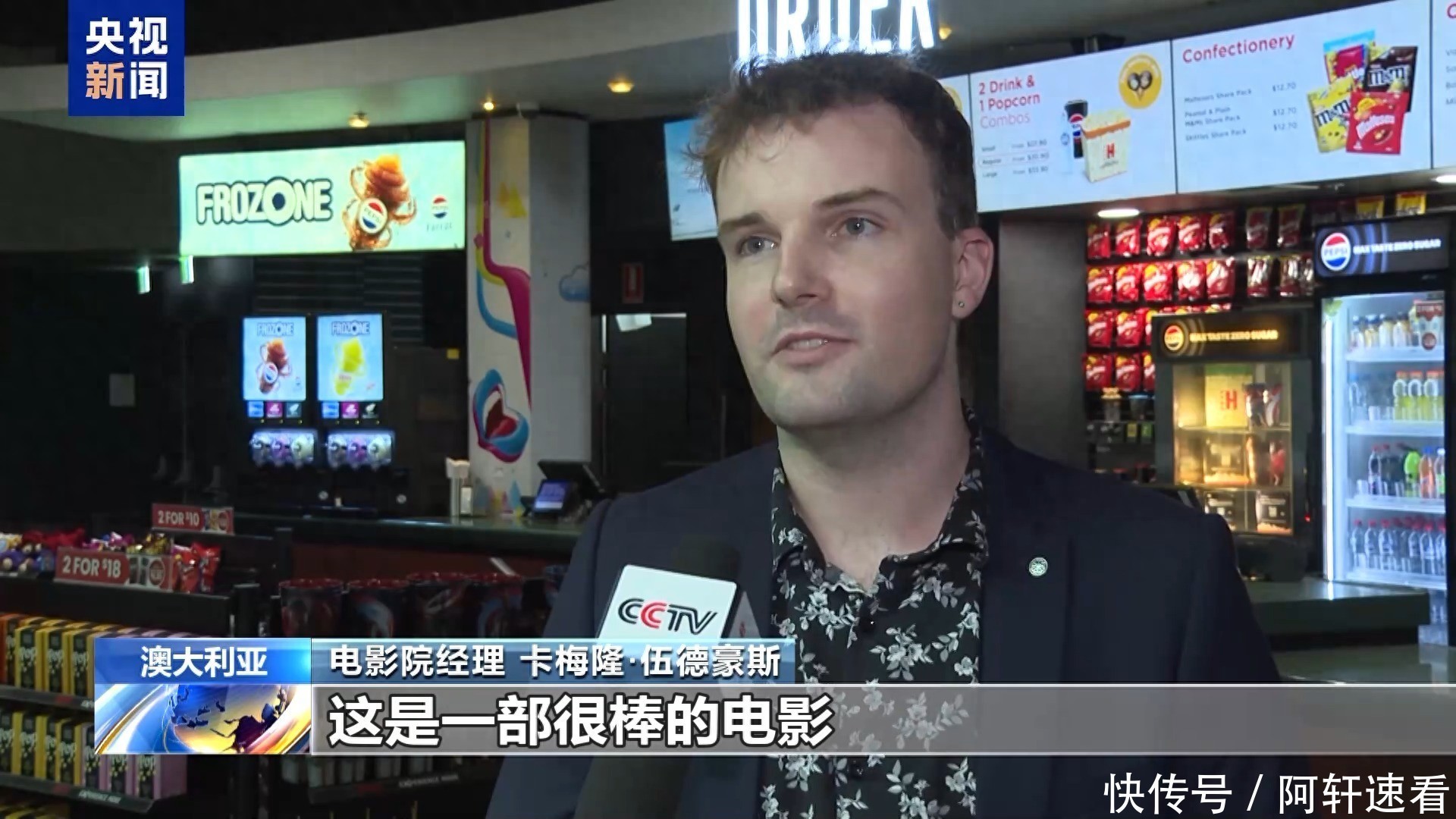 电影院司理 卡梅隆·伍德豪斯:这是一部很棒的电影,不雅众齐很招供,好多场次的票齐售罄了,民众反馈齐很好,能看到不雅影的氛围以及不雅众走出影院的心机齐很积极。