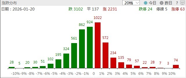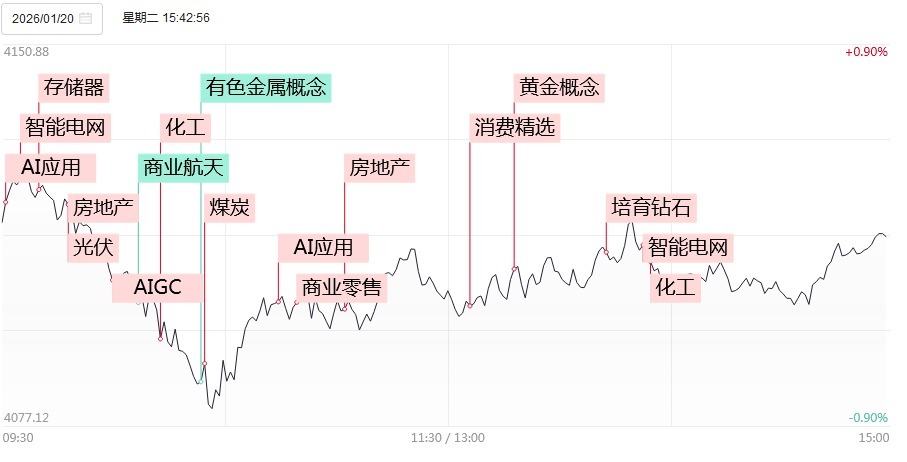 1月20日,三大指数集体收跌,创业板指盘中一度下落稀疏2%。沪深两市成交额2.78万亿,较上一个往异日放量694亿。盘面上,全阛阓超3100只个股下落,62只股票涨停。从板块来看,化工板块逆势爆发,十余只因素股涨停,红宝丽、山东赫达、维远股份、红墙股份涨停。贵金属认识络续强势,湖南白银涨停。房地产板块发扬活跃,大悦城、城投控股涨停。AI诓骗端局部走高,佳云科技、粤传媒、浙文互联涨停。下落方面,算力硬件、营业航天等板块跌幅居前。其中营业航天认识股集体大跌,神剑股份4连跌停,航天能源2连跌停。拆除收盘,沪指跌0.01%,深成指跌0.97%,创业板指跌1.79%。